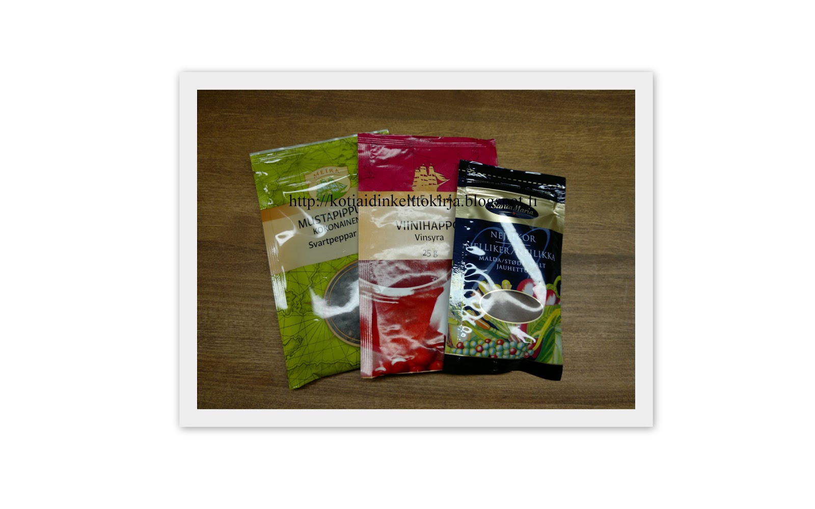 Ajattelin pitää arvonnan blogissani, kun pääsin taas uudelle tuhannelle kävijämäärässä. Arvonnassa palkintona on pussi kokonaisia mustapippureita, pussi viinihappoa ja pussi neilikkajauhetta.