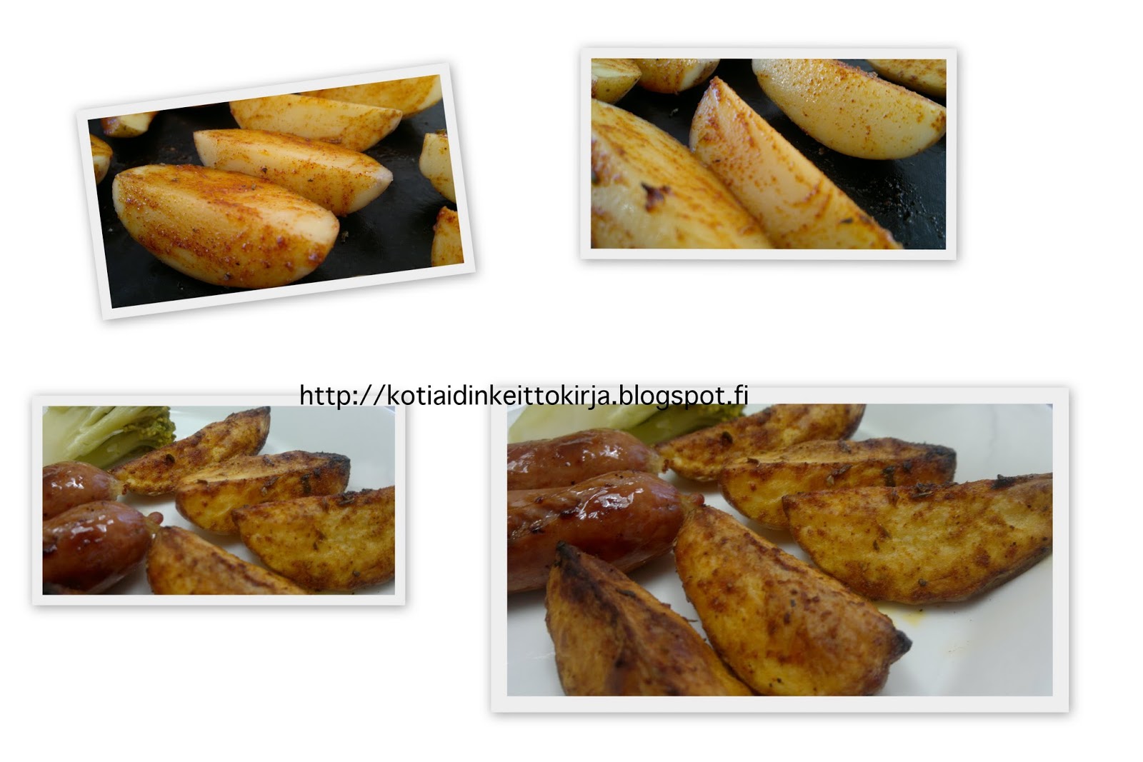 - Levitä perunalohkot pellille kuoripuoli alaspäin.