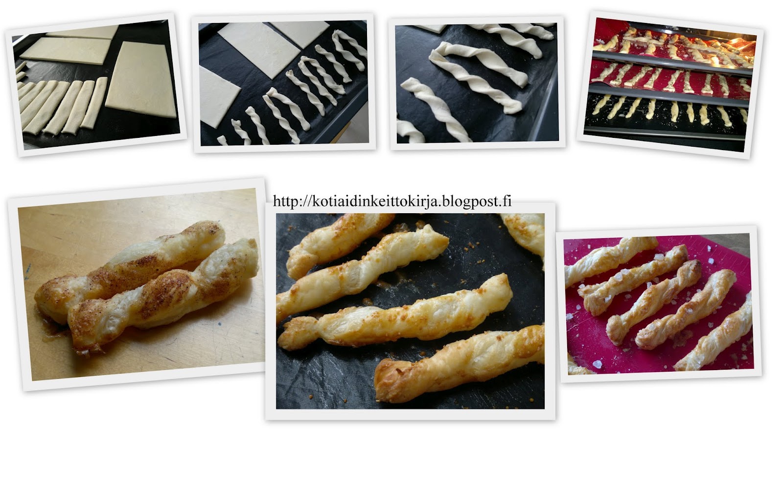 Vinkki! Jos haluat makeita kierteitä, niin laita päälle esim. kanelisokeriseosta tai pelkkää sokeria.